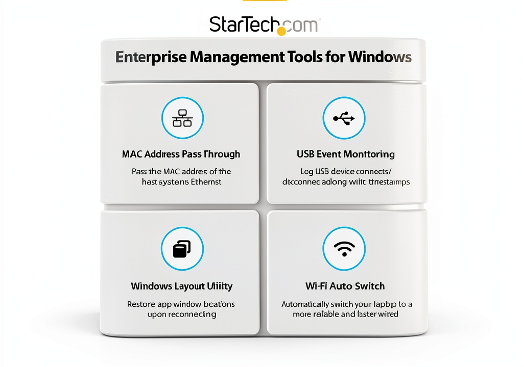 The StarTech Dual-Monitor USB-C Docking Station (model 201NUSBCDOCK) is engineered for professionals requiring high-performance connectivity. It supports dual 4K monitors at 60Hz, delivers up to 100W of power for laptop charging, and includes a 1GbE Ethernet port for fast network access. Constructed with durable materials and a compact design, this dock ensures reliable operation in various environments. Key specifications include a universal power adapter for North America, a 3.3ft host cable, and driverless compatibility for effortless setup.